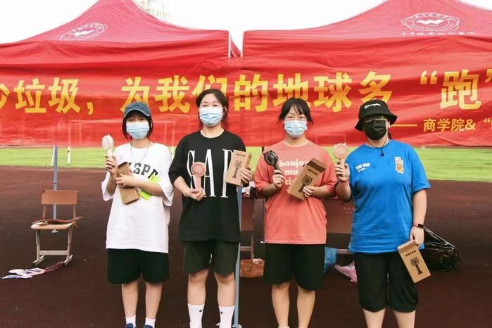 “捡跑”活动设有三个环节,在起点设置环保知识竞答;第二环节利用同学们平时收集的空水瓶进行彩色涂鸦,变废为宝;最后一个环节设置垃圾分类,让同学们将自己捡到的垃圾进行有效分类。“长跑、深蹲、捡垃圾,不仅可以跑步锻炼身体,又能在举手之间实现环保”。电商203班潘璐诗同学在这样简单的初心之下,带着这样绿色的理念,报名参加了此次活动。