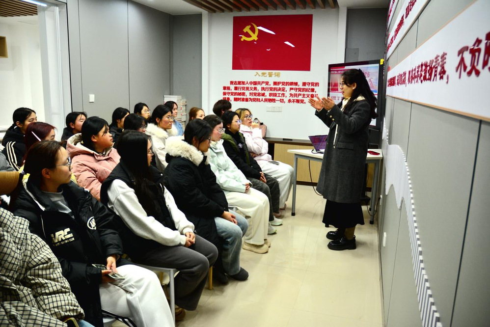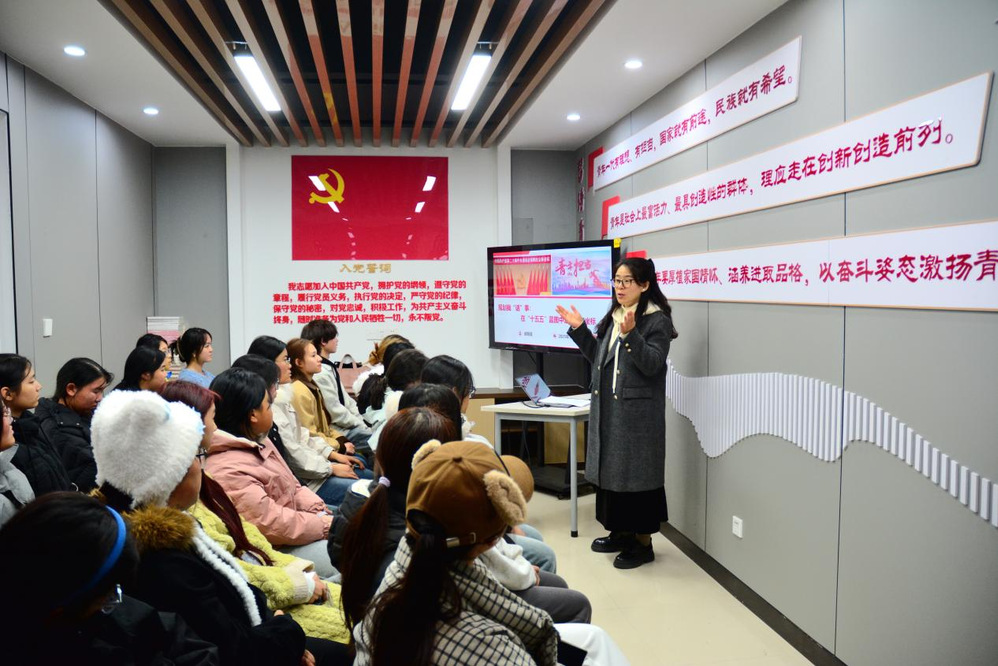 胡青莲结合浙江杭州创业孵化、青年技能竞赛等政策实例,深入剖析青年在推动国家发展中的重要作用。她分享了青年科研人员攻关“卡脖子”技术、大学生返乡支持乡村振兴、青年志愿者参与基层治理等一系列生动案例,清晰揭示了国家战略需求与青年奋斗方向的高度契合。此外,她还列举了宿舍社区智能化改造、共享空间建设等校园发展规划,说明国家发展成果正逐步融入学生学习生活的细节之中。